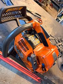 Vendo Motosega professionale Husqvarna 540 XP top‑handle a scoppio, completamente revisionata e pronta all’uso, ideale per potatura e tree‑climbing. •Modello Husqvarna 540 XP Mark III con tecnologia X‑Torq, motore 2 tempi da 39,1 cm³ circa, potenza intorno a 1,9 kW / 2,6 HP. •Motosega compatta e maneggevole da potatura (impugnatura superiore), pensata per uso professionale su piattaforma o in corda. Caratteristiche tecniche •Barra Husqvarna da 14”–16” (35–40 cm) compatibile, passo catena 0,325” mini, pensata per tagli rapidi e precisi. •Peso senza gruppo di taglio circa 4,1 kg, ottimo bilanciamento e basse vibrazioni grazie alla tecnologia LowVib. Condizioni e manutenzione •Macchina completamente revisionata: controllo generale, pulizia, sostituzione dei componenti usurati e affilatura catena (specifica nel messaggio eventuali parti nuove: candela, filtro aria, filtro carburante, catena, ecc.). •Pronta a lavorare, si consiglia miscela al 2% con olio sintetico di qualità e utilizzo di olio catena adeguato. Ideale per •Professionisti del verde, potatori, arboricoltori che cercano una motosega leggera ma potente per potature di precisione. •Visione e prova possibile a Borgonuovo di Tarano (RI); preferibile consegna a mano, eventuale spedizione a carico dell’acquirente.