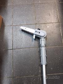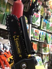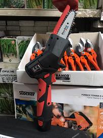 Motosega leggera e compatta per potatura con barra di taglio da centimetri 12,5 e 2 batterie da 4 A.