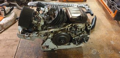 Vendo motosega usata poco ma recentemente rimasta sotto un albero in fase di abbattimento, la motosega si accende e gira perfettamente, sono da sostituire tutte le parti smontate nell'ultima foto, per delucidazioni contattatemi