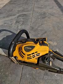 Vendo motosega Stiga modello SP 466, una macchina semiprofessionale con un motore potente da 46,5 cc (2,1 kW). La motosega è completa di barra originale e relativo copribarra, parte e resta in moto regolarmente (membrane del carburatore appena sostituite), tuttavia necessita di una regolazione alla carburazione. Segnalo che il freno catena è presente e funzionante, ma la maniglia in plastica è spezzata e richiede quindi una riparazione o sostituzione. Vendo nelle condizioni come da foto per pezzi di ricambio o per farla sistemare e utilizzare, manca solo la catena.