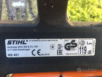 vendo motosega stihl professionale ms 461 da 77 di cilindrata per grossi abbattimenti .....freno catena non funzionante- per il resto è perfettamente funzionante qualsiasi prova anche sul legno