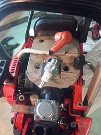 Ottima Motosega professionale, ai livelli di Stihl e Husqvarna, made in Japan, cilindrata 54cc, 2,8Kw, peso 5,4 kg. Revisione e pulizia completa, pompa olio con girante nuovo, carburatore con membrane e spillo nuovi, candela nuova, barra da 16" e catena nuove, pignone da 8 denti nuovo, perfettamente funzionante. Ha la particolarità di avere la regolazione del flusso olio catena facilmente regolabile con pomello sul coperchio superiore; si preferisce consegna a mano.