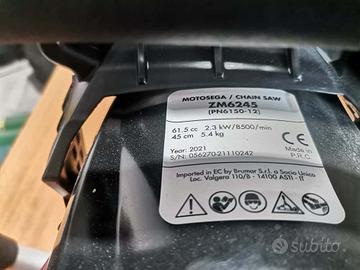 Motosega ZM6245. Impugnatura ergonomica con freno catena di sicurezza integrato. Grande velocità di rotazione. Leggera e maneggevole, ideale per medio-grandi lavori di taglio.