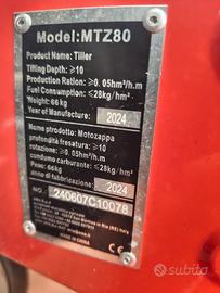 In vendita. Motozappa modello MTZ80, praticamente nuova (anno 2024), equipaggiata con motore Fuchai 212 cc a benzina. Macchina potente e affidabile, ideale per orti e lavorazioni su terreni di media consistenza. Caratteristiche principali: Motore 4 tempi Fuchai Cilindrata: 212 cc Potenza: 7 CV Normativa Euro 5 (bassi consumi ed emissioni) Peso: 66 kg (ottima stabilità durante il lavoro) Avviamento a strappo Completa di frese + ruote aggiuntive Prestazioni: - Ottima capacità di lavorazione fino a circa 500 m²/ora - Profondità lavoro: circa 10 cm (20 cm reali) Adatta per orti, giardini e piccoli terreni agricoli Condizioni: pari al nuovo, pronta all’uso.