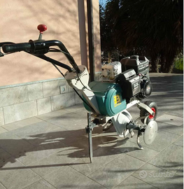 motozappa Bertolini 202E, ad avviamento a corda con leva tiraggio aria per facilitare la partenza. Può essere ristretta o allargata inserendo o escludendo le zappe aggiuntive, da 60cm a 80cm di lavoro nelle due varianti. Ruotino pneumatico anteriore per il facile spostamento su terreno accidentale. E' stata dotata di manubrio girevole per il lavoro in serra. Regolatore di velocità a leva, una retromarcia ed una marcia avanti. Usata pochissimo per passaggio ad una con trazione integrata. Praticamente nuova.
