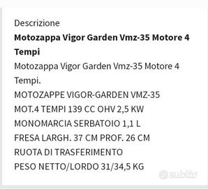Motozappa da giardino, marchio VIMAR , 4 tempi, da revisionare perché è da un po ferma. Prezzo di listino nuova 500 euro . Vendo per inutilizzo 150 €, Nelle foto c'è la descrizione del prodotto. Ritiro a carico dell'acquirente dopo Cairo Montenotte.