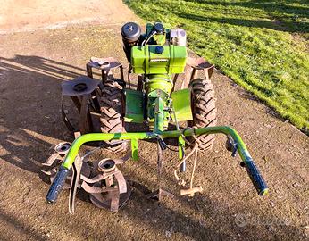 In vendita motozappa Grillo 9000 con motore diesel Lombardini LDA 530 – 10 HP, produzione anni ’70. Usata ma ancora perfettamente funzionante, presenta i classici segni di usura.
