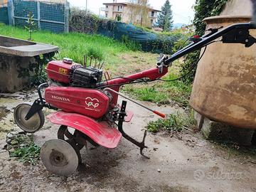 Vendo motozappa Honda F501 per vendita terreno. A malincuore perchè fantastica. Robusta come un mulo, non si inceppa mai, parte al primo colpo. Si lascia guidare senza troppi sforzi. 2 marce, retro, due folli. Motore 4.8 CV, 4 tempi, 2.6 litri benzina. barra da 95 cm, frese da 30 cm.