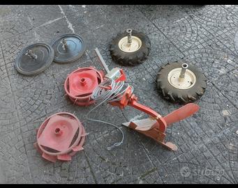 Viene venduta con aratro, coppia ruote lisce per trasporto, coppia ruote in gomma tassellate e coppia ruote in ferro.