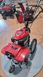 Una robusta motozappa di medie dimensioni, con frese controrotanti, gruppo trasmissione e un assolcatore opzionale. Funzione Larghezza di lavoro massima (mm): 550 Profondità di lavoro massima (mm): 200 Velocità di marcia avanti: 3 Velocità di retromarcia: 1 Velocità di rotazione in avanti (giri/min.): 0.2 - 1 m/s Velocità di rotazione all'indietro (giri/min.): 0.3 m/s Velocità di rotazione presa di forza (bassa/elevata) (giri/min.): 141 Dimensioni Dimensioni (L x P x A) (mm): 1,730 x 585 x 1,045 Peso a secco (kg): 77 Motore Motore: OHC 4 Tempi Modello motore: GCV160 Cilindrata del motore (cc): 160 Potenza netta del motore (kW/ giri/min.): 3.3/3.600 Capacità del serbatoio carburante (litri): 1.7 Capacità olio motore (litri): 0.55 Avviamento: Avviamento a strappo Frizione di trasmissione: Manuale - Mandrino a espansione Trasmissione: Ruote - Ingranaggio epicicloidale per ingranaggio conico Trasmissione finale: Ruote - Ingranaggio costante - Frese catena e ingranaggio Differenziale / frizione laterale: Sì Pressione sonora all'orecchio dell'operatore (dB(A)+): 79 Livello di potenza sonora garantito (dB(A)++): 93 Vibrazioni (m/sec²): 4.8