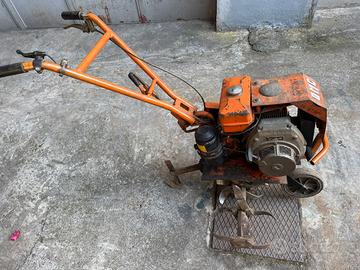 MOTOZAPPA CON ZAPPE IN BUONE CONDIZIONI CON FRIZIONE A CINGHIA E BOTTONE DI SPEGNIMENTO SUL MANUBRIO, MOTORE IN OTTIME CONDIZIONI PARTE SUBITO AVVIAMENTO A STRAPPO.