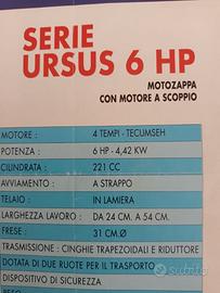 Vendo Motozappa Mep Ursus 6 Hp con motore a scoppio 4 tempi Tecumseh 221cc