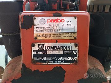 Vendo motozappa Pasbo G84 con motore quattro tempi 10CV diesel Lombardini modello 6LD 360 con cilindrata 359 cm3.