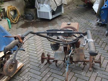 Vendo motozappa usata il modello è PASBO, la motozappa è rimasta ferma da 2 anni da VIENE VENDUTA DA CONTROLLARE E RIMETTERE IN MOTO, il motore gira libero e ha molta compressione, cambio con marce avanti piu' la retromarcia, completa di leva di sicurezza come si vede nelle foto, le zappe sono in ottime condizioni apertura di lavoro un metro 100 centimetri.