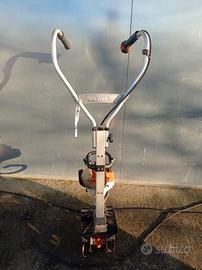 Come da titolo vendo MM 55STHIL motozappa multisistema, come nuova perfettamente funzionante , poche ore di lavoro, può essere equipaggiata con vari attrezzi intercambiabili, avviamento facile, manubrio con tutti i comandi sotto controllo, telaio in alluminio ripieghevole, fresa con 4 lame per vangare, cilindrata c.c.27,2 potenza 0,87 KW peso Kg 8,3 motore due tempi miscela 2%