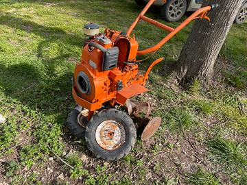 Motozappa usata l anno scorso e tenuta ferma fino ad oggi… molto pitente con possibilita di aggiungere rimorchietto e provvista di presa di forza posteriore… dato che è stata ferma non parte ma il motore gira… con un po di pazienza darà ottimi risultati