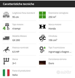 Motozzappa Agri 102 premium . Motore Honda GX 200 6,5 hp con tutte le caratteristiche visionabili in foto . Acquistata il 06/06/2023 ed usata solo 2 volte ( motovo della vendita ). Dispositivo Rotocat per fresare trinciare e mescolare in un solo colpo . Il prezzo di vendita attuale e di 1660 euro più 120 per il Rotocat .