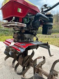 Motozzappa con trasmissione a cardano e 3 marce (2 avanti + retromarcia) Necessita della sostituzione delle puntine, in quanto stenta nella partenza e appena scalda si spegne.