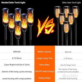 🔥【Luci Solari Esterno Giardino】Moxled Fiamma Luci Solari Esterno con 12 LED ti offre un realistico effetto fiamma tremolante. Ogni luce sfarfalla con luci bianche calde, imitando fiamme danzanti estremamente realistiche e naturali. Con la radiazione luminosa, è un compagno ideale per eventi all'aperto come feste di famiglia, barbecue e campeggio.