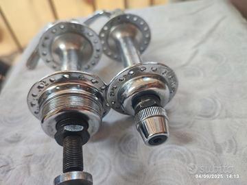 cedo coppia di mozzi Legnano anteriore e posteriore a sganciò rapido perfettamente funzionanti già revisionati con sostituzione pallini,grasso nuovo rosso e già registrati ,sono solo da montate info 338 2829005 posso spedire a carico dell'acquirente.