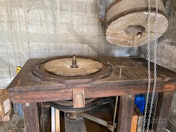 Vendo bellissimo mulino artigianale di fine ‘800, con struttura in rovere e larice e con macine in pietra da 64 cm, funzionante ma molto migliorabile. Motore da 4 hp, corrente 380V, ho a disposizione anche il suo inverter ma è ancora da montare. Il mulino ha una resa di 40-50 kg di farina oraria senza scaldare. L’ho comprato 3 anni fa da un artigiano ed è stato usato un paio d’ore. Vendo per passaggio ad un mulino professionale. Attualmente il mulino macina una farina integrale. Andrebbe abbinato ad un setaccio per ottenere farine tipo 0. 1 e 2. Se interessati posso spedire un video del mulino in azione.