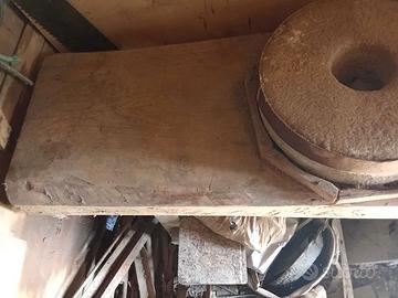 Mulino antico dell'ottocento con macine in pietra per macinare i cereali, funzionante, si gira la pietra superiore a mano, con piano in rovere, lunghe 1,5 m e larghe 45 cm, adatto per esposizioni o arredamento conservato molto bene, vedi nei miei annunci altri mulini disponibili..