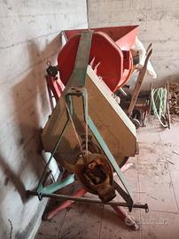 Mulino per cereali con attacco a 3 punti e cardano (compreso). Buone condizioni generali, 3 misure di vagli e attacco per due sacchi di farina in uscita.