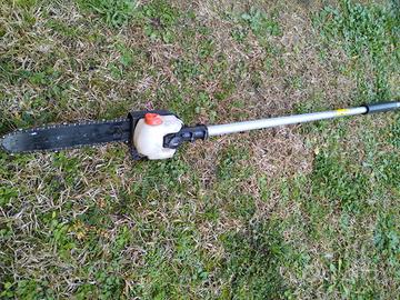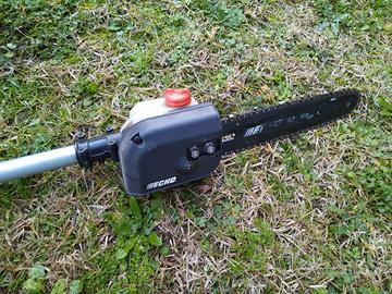 Vendo multifunzione professionale PAS echo con attacco potatore(motosega) echo originale con barra di taglio da 25 cm con oliatore automatico, il tutto è perfettamente funzionante e pronto all'uso. Utilizzato solo per uso privato. Lunghezza totale attrezzo 2.50 m ed è divisibile. Multifunzione con attacco quadrato da 5mm e si possono attaccare anche altri accessori echo (decespugliatore, tagliasiepi, ecc...).qualsiasi prova funzionamento. Vendo anche separatamente (multifunzione 250, attacco potatore 150) .Tutto insieme 350 euro.