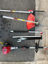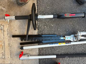 Multifunzione 4 tempi nuovo praticamente, utilizzato solo 2 ore , possiede asta di prolunga , decespugliatore con testina batti e vai , motosega barra 25cm, e tosasiepi orientabile