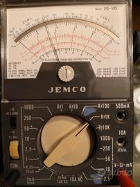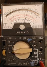 Multimetro analogico professionale JEMCO mod.US-105. da 50000ohm x volt in c.c. e 10000 ohm x volt in a.c. pulito controllato ,preciso ,perfettamente funzionante . funziona con due pile da 1,5 v tipo stilo e una da 22,5 v per la sola portata ohm x 10.000.pile nuove comprese . privo di puntali ,universali . Nelle foto su può apprezzare la lettura di un resistore e di una pila stilo .Strumento precisissimo ! Spedizione accurata.