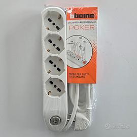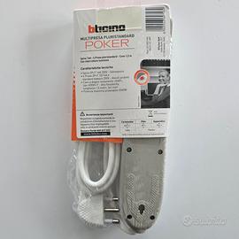 Multipresa BTicino Poker nuova, mai usata e sigillata, con 4 prese pluri-standard compatibili con spine italiane e tedesche (10A/16A).
