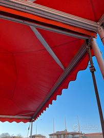 Struttura robusta con pali bianchi e telo arancione, ideali per eventi, fiere, mercati, attività commerciali o coperture esterne.