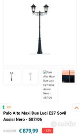 N.2 luci a lampione (attacco E27, max 100W ciascuna). Grado di protezione IP44 (adatti all'esterno)