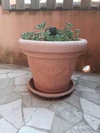 VENDO 2 vasi in resina: il primo è con porta vaso in ferro verniciato, come da foto , compreso di pianta, altezza tot. da terra cm. 95, diametro max. del vaso cm.34, sempre tenuto all'interno casa, non arrugginito , il secondo è un vaso in resina con disegno in rilievo, alto cm. 34 , diametro cm.40, vendo i 2 vasi insieme, Prezzo €.45