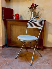 EMU Sedie pieghevole in metallo presenta struttura in tubolare di acciaio verniciato e seduta in lamiera. singolare motivo del suo schienale si ispira alle forme della Cupola, color grigio chiaro , resistere agli agenti atmosferici con l’esclusivo processo anticorrosione