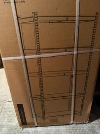 N. 4 scaffalature kit lamiera, ancora in inscatolate, cinque piani legno. MDF