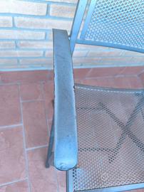 Vendo n.4 sedie in metallo da esterno, pieghevoli, con braccioli. In buone condizioni ma con qualche segno di usura, come da foto. solo ritiro a mano, no spedizione . per 20€ in più sono disponibili cuscini bianchi, praticamente nuovi, su misura (foto disponibili su richiesta)