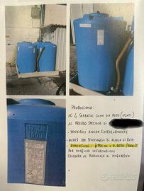 Vendo serbatoi verticali in polietilene blu, capacità 1000 litri ciascuno. Ideali per la raccolta di acqua piovana, irrigazione orto/giardino o come riserva idrica.
