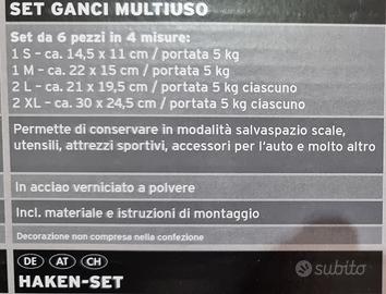 Vendo 2 scatole di ganci multiuso mai usati ed ancora infascettati, come da foto, e corredati di viti e tasselli per il fissaggio.