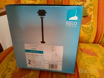 Nr. 6 lampioni da esterno Chiappera con doppio paralume. Marca Eglo altezza cm. 80 diametro cm. 22, acciaio, vetro, n.lampadine 1 x 40W a led attacco E27, grado di protezione IP65. Nuovi mai usati e disimballati. Prezzo trattabile. I lampioni possono essere venduti anche singolarmente.