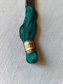 n. 9 matassine di cotone da ricamo verde ( 0223) del 25. Marca Ancora