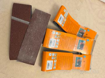 NASTRI DI TELA ABRASIVA AL CORINDONE Per levigatrici a nastro. Per sverniciare, pulire e levigare ferro, acciaio, legno e plastica, per rimuovere la ruggine e lavorare la carrozzeria. carta vetro vetrata 2 grana da 80 1 grana da 100 1 grana da 40 metà semi usata come da foto