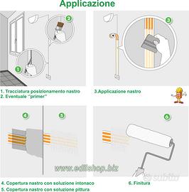 Si incolla direttamente al muro e scompare agilmente sotto una mano di pittura, rasante o altro.