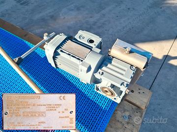 nastro di trasporto per merci e materiali usato, si tratta di un piccolo nastro trasportatore industriale motorizzato con motore di marca Sew-Eurodrive mod. WA20 DRN63M4 del 2022 funzionante a 230v. dimensioni: 134X61cm h29cm, nastro 127X44cm