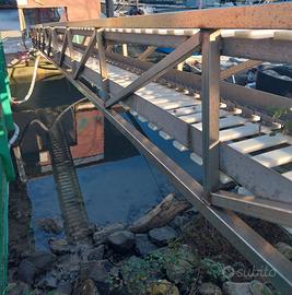 Nastro trasportatore in ottimo stato tutto in acciaio inox con appoggio in teflon ,lungo 12 metri con alimentazione 380