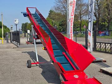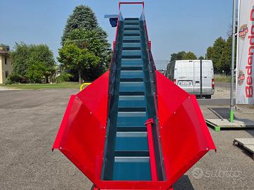 Questa tipologia di nastro trasportatore è dotato di sponde rialzate per il trattenimento del materiale, come ad esempio paglia e fieno, e di una rampa che facilita il caricamento tramite carriola.
