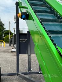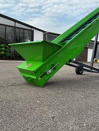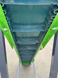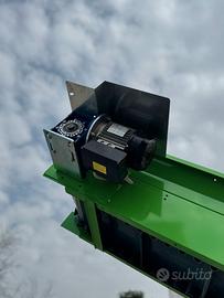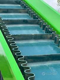 Nastro trasportatore 4,5x400 con tappeto spondaflex usato ma in perfette condizioni, mostra segni di usura soltanto il tappeto. Questo tipo di nastro è adatto per minuteria e liquidi, come pellet, cippato e molto altro, ideale per ambienti protetti.