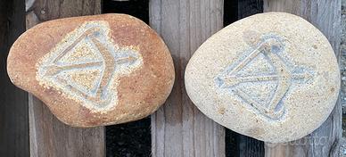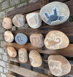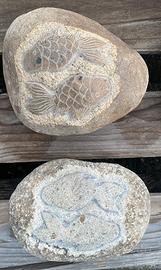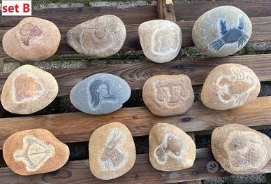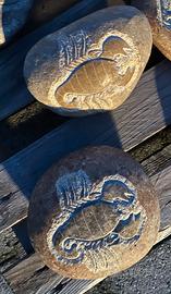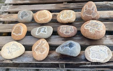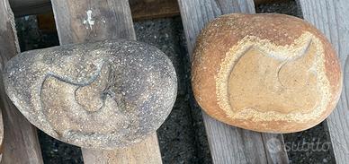 Sono in sasso naturale autentico, scolpito a mano, il colore varia a seconda della pietra e della finitura superficiale, non sono colorati artificialmente.