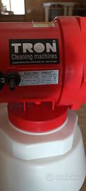 Incorpora un elettro ventilatore di grande potenza in grado di nebulizzare attraverso speciali ugelli ad una distanza di 5-7 metri detergenti disinfettanti e sanificanti concentrati appositi, saturando in poco tempo ampie metrature.