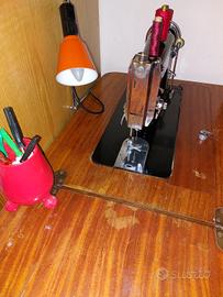 vecchia macchina da cucire,funzionante.Ottimo affare. Regalo tutto ciò che si vede nelle foto(nastri e bordure;aghi e forbicina).